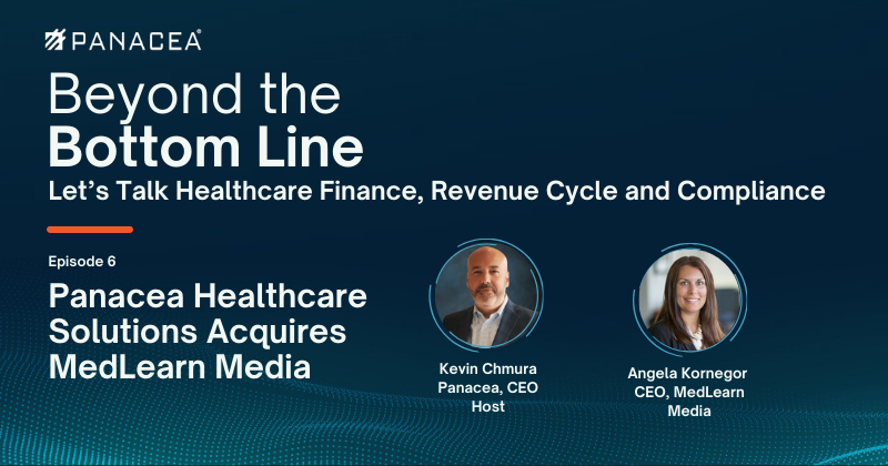 In this episode of Beyond the Bottom Line, Kevin Chmura is joined by MedLearn Media's CEO, Angela Kornegor, to discuss Panacea and MedLearn's shared history, in response to Panacea's latest acquisition of MedLearn. Kevin and Angela dive into MedLearn's trusted education brands which include MedLearn Publishing, RACmonitor and ICD10monitor and how combining forces completes the model of software, consulting and professional level education.